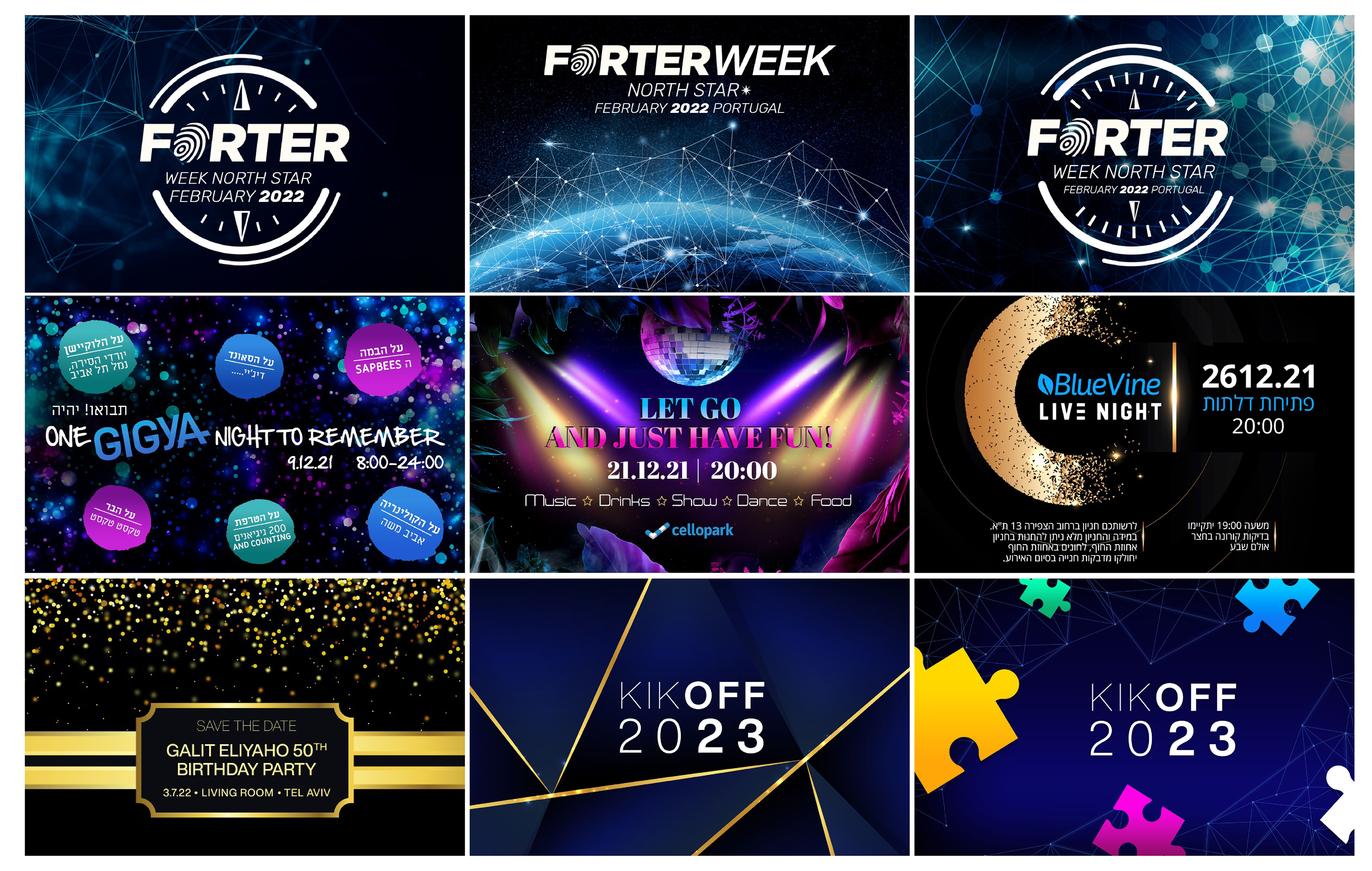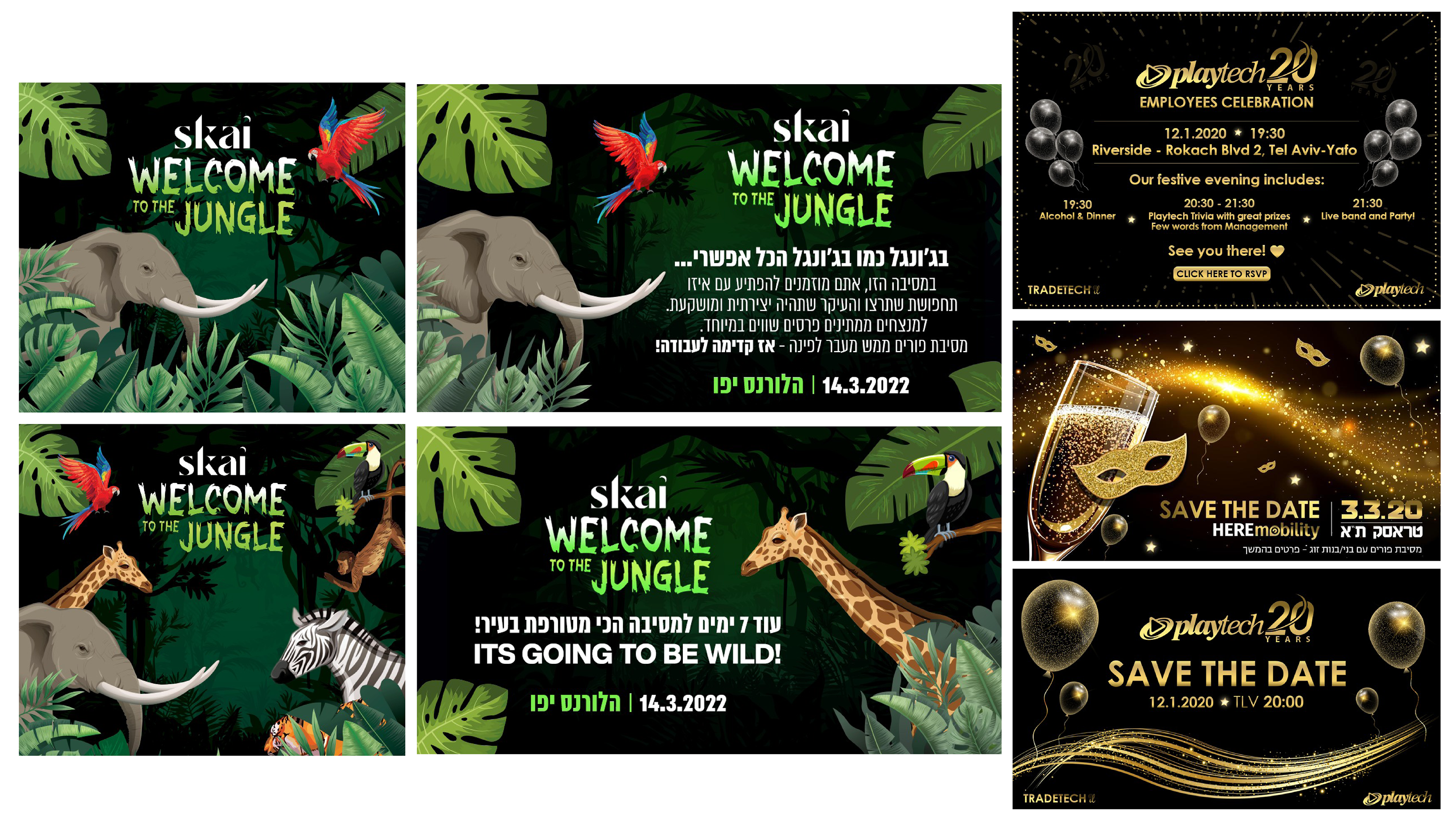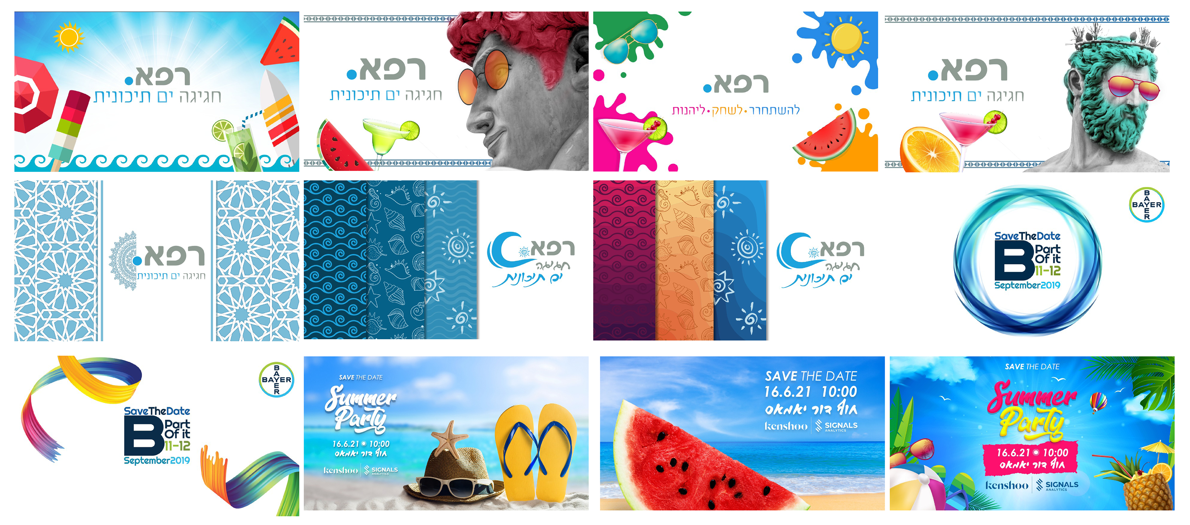 During the years, I had the privilege of making a lot of company events. I was involved from idea phase to final results, from event logo to branding ideas and to final print. here are some of the examples.